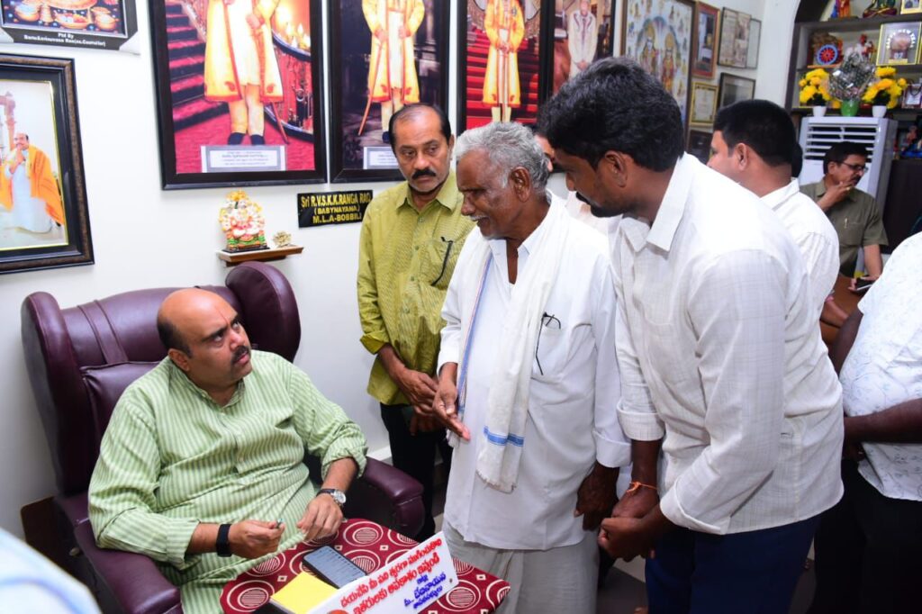 ఈ కార్యక్రమంలో భాగంగా, బొబ్బిలి ఏఎంసీ కళాసీ సంఘం సభ్యులు మున్సిపల్ చైర్మన్ శ్రీ రాంబర్కి శరత్ గారుతో కలిసి వచ్చి ఎమ్మెల్యే శ్రీ బేబీనాయన గారుకి వారి సమస్య విన్నవించగా, సంబంధిత అధికారితో మాట్లాడి తక్షణమే పరిష్కరించాలని సూచించారు. అనంతరం, పేద బ్రాహ్మణ విద్యార్థుల కోసం ఆంధ్రప్రదేశ్ బ్రాహ్మణ సంఘ సమాఖ్య వారు ఏర్పాటు చేయనున్న జాబ్ మేళా పోస్టరును ఎమ్మెల్యే శ్రీ బేబీనాయన గారు ఆవిష్కరించారు.