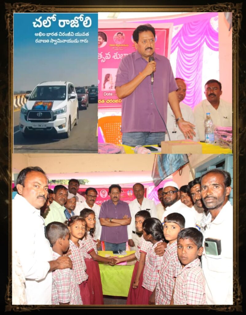 ఈ కార్యక్రమంలో రాజోలి మండల MEO శ్రీ భగీరథ రెడ్డి గారికి, MPDO గారికి, గ్రామ కార్యదర్శి గారికి, మెగా అభిమానులు అందరికీ పేరు పేరునా హృదయ పూర్వక ధన్యవాదాలు.
