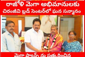 Out Standing Blood DonorSri P.Shankar Reddy గారు 82 వ సారి రక్తదానం అనంతపూర్ జిల్లా వాస్తవ్యులు,మెగా రక్తదాత శ్రీ P శంకర్ రెడ్డి గారు B +ve చిరంజీవి బ్లడ్ సెంటర్ లో ఇప్పటి వరకు 82 సార్లు రక్తదానం చేసిన సందర్భంగా హృదయపూర్వక అభినందనలు. సామజిక స్పృహతో క్రమం తప్పకుండా అనంతపూర్ జిల్లా నుండి ప్రతి 3 నెలలకు ఒక సారి హైదరాబాద్ ప్రత్యేకంగా విచ్చేసి రక్తదానం చేస్తున్న శ్రీ శంకర్ రెడ్డి…